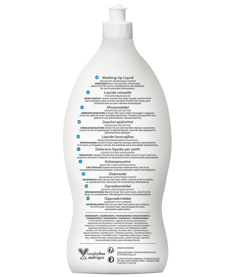 ATTITUDE's einzigartige Formel ist mit tiefenreinigenden und antibakteriellen Wirkstoffen wie Saponin hergestellt und verwendet nur natürliche, pflanzliche und hypoallergene Inhaltsstoffe. Außerdem ist es ECOLOGO-zertifiziert, nachhaltig und biologisch abbaubar, mit einer schäumenden Wirkung, die hart zu Fett, aber sanft zu den Händen ist, so dass Sie es täglich verwenden können, ohne sich Sorgen machen zu müssen!