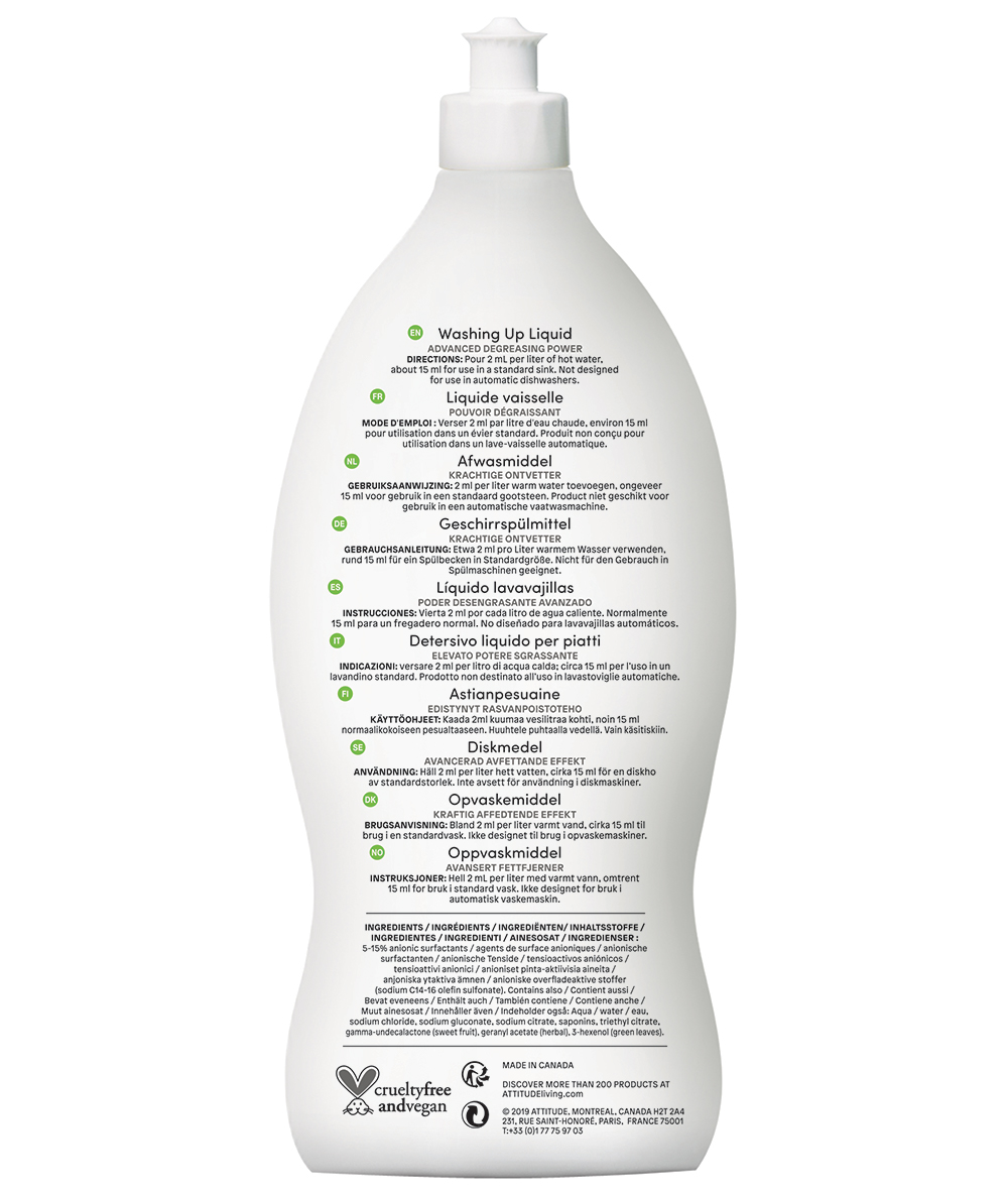 ATTITUDE's einzigartige Formel ist mit tiefenreinigenden und antibakteriellen Wirkstoffen wie Saponin hergestellt und verwendet nur natürliche, pflanzliche und hypoallergene Inhaltsstoffe. Außerdem ist es ECOLOGO-zertifiziert, nachhaltig und biologisch abbaubar, mit einer schäumenden Wirkung, die hart zu Fett, aber sanft zu den Händen ist, so dass Sie es täglich verwenden können, ohne sich Sorgen machen zu müssen!