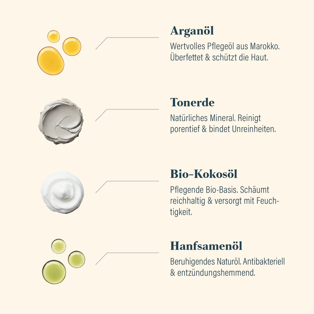 - Unsere Geheimwaffe Hanfsamenöl beruhigt Hautirritationen und wirkt antiseptisch.